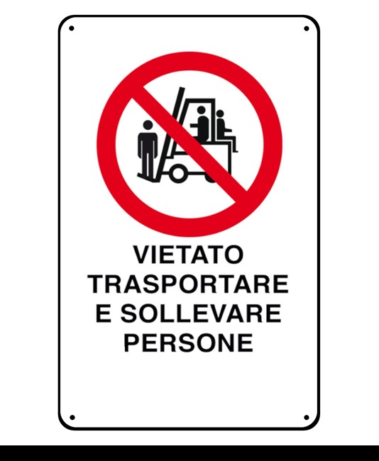 Cartelli di divieto 'vietato trasportare e sollevare persone'
