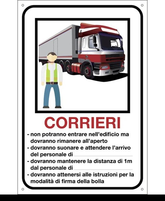 Cartello con spazi scrivibili 'per corrieri'