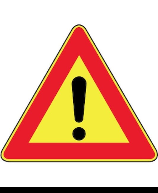 Cartello 'pericolo' in lamiera. Lato 60/90 cm