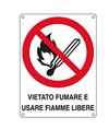 Cartello 'vietato fumare e usare fiamme libere' in alluminio piano