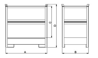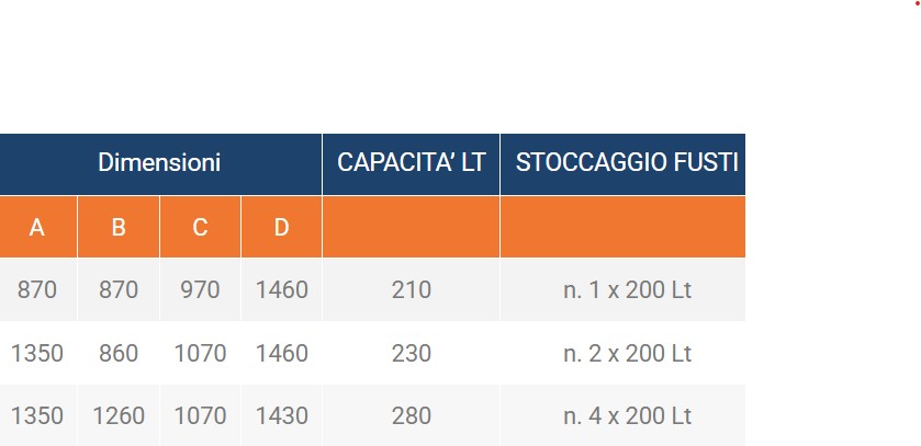 Contenitore accatastabile con vasca di raccolta per 1,2, e 4 fusti